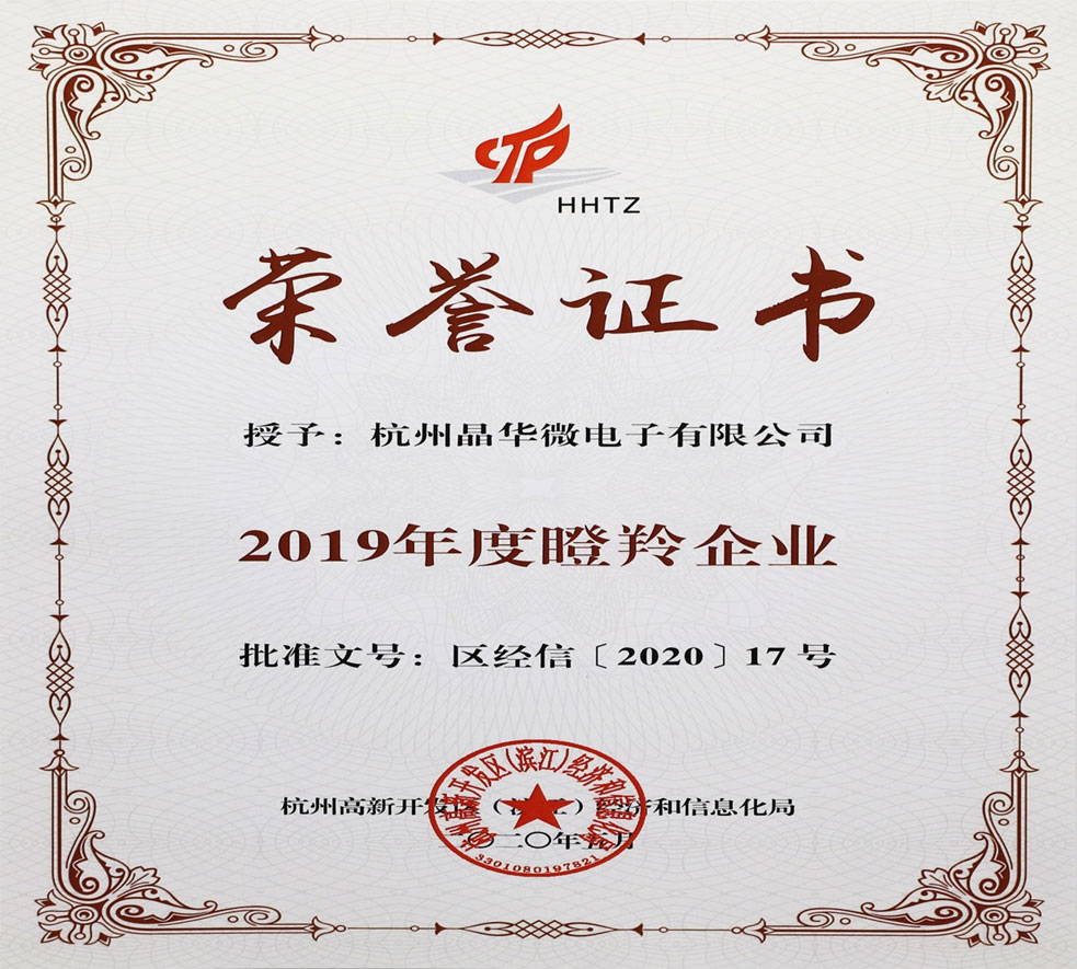 杭州晶華微電子有限公司再攬“瞪羚企業(yè)”稱號